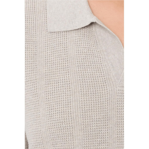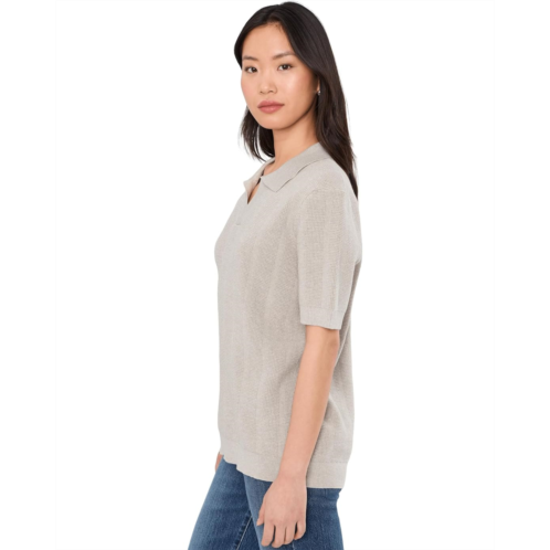 Crafted with soft sweater-knit fabric, it features a collared neckline for a relaxed look. The short sleeves and lightweight construction make it versatile for layering or wearing solo.