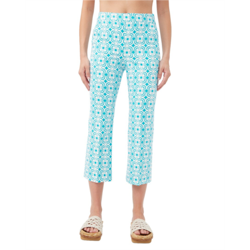 Introducing the Trina Turk Flaire 2 Pant, a stylish and comfortable addition to your wardrobe. These pants are crafted from a blend of 78% cotton, 21% viscose, and 1% spandex, making them breathable and easy to move in. The Flaire 2 Pant in Blue Grotto features side pockets and a side zip for added convenience. With an inseam of approximately 26 inches, these pants are perfect for any casual outing. Designed by the contemporary and colorful brand Trina Turk, these pants draw inspiration from California's multicultural mix. Whether you choose to hand wash or machine wash them, these pants are made in the USA for quality you can trust. Upgrade your casual wardrobe with the Trina Turk Flaire 2 Pant today.