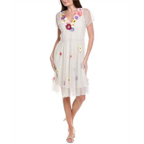 - Marsha Dot Mesh Mini Dress In White With Floral Applique Details