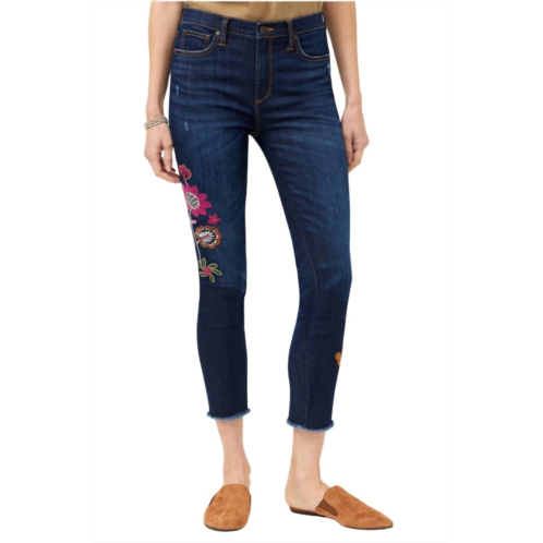 Comfortable and stylish, we love this cropped jean for all of the obvious reasons.Embrace your boho chic style with the Maxima Cropped Skinny Jeans by Johnny Was, in a dark wash perfect for spring occasions. The jeans boast a mid-rise and a slim fit, featuring a trendy floral embroidered pattern along the leg line. Crafted from a 76% Cotton, 23% Polyester, and 1% Lycra blend, they ensure comfort with a touch of stretch, complete with a convenient zip closure and five pockets. Care is simple with machine wash and tumble dry instructions.
