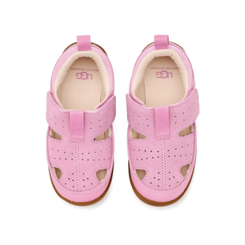 - Equip little explorers with a sandal that's as ready to roam as they are. The UGG kids Adventurer sandals are made from machine-washable suede and recycled textiles, so you can easily toss them in the laundry after puddle Jumping excursions. Perforated details and cutouts let little feet breathe, while the hook-and-loop strap closure keeps these securely in place. Crafted with washable suede and a combination of synthetic and recycled textile materials, these sandals are built to be both durable and eco-conscious. The cushioned foam footbed keeps feet comfy from morning adventure to bedtime unwind.