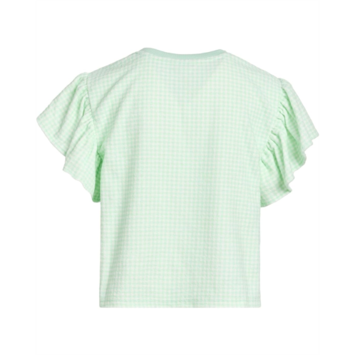 - Elevate your little one's fashion game with Janie and Jack Ginham Terry Shirt. The pull-on style top features a ribbed crew neck, short flutter sleeves, an allover checkered pattern, and a straight hem.