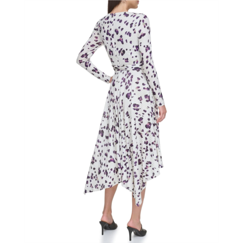 Womens DKNY Long Sleeve Print V-Neck Wrap Dress