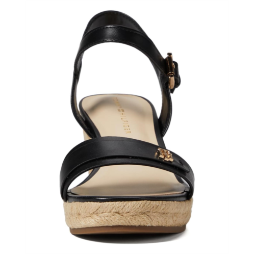 - Let every step of yours define sizzling beauty as you wear the Tommy Hilfiger Genavo Sandals. The wedge-heeled footwear features faux leather upper construction with buckled ankle strap closure and woven braided detail.