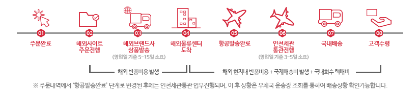 • 주문 취소 및 주문 변경시 해외물류창고에서 브랜드사로 리턴하는 배송비가 발생합니다.