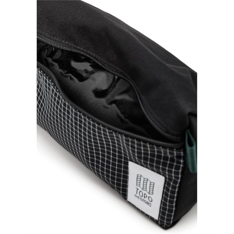 - Keep your essentials and toileteries secured when going places, in the Topo Designs Dopp Kit that comes with a spacious main interior and a triangular self-standing shape. The kit features a paracord hook loop & zipper pull, heavy-duty YKK zipper closure, and fully-lined pack cloth interior for easy cleaning.