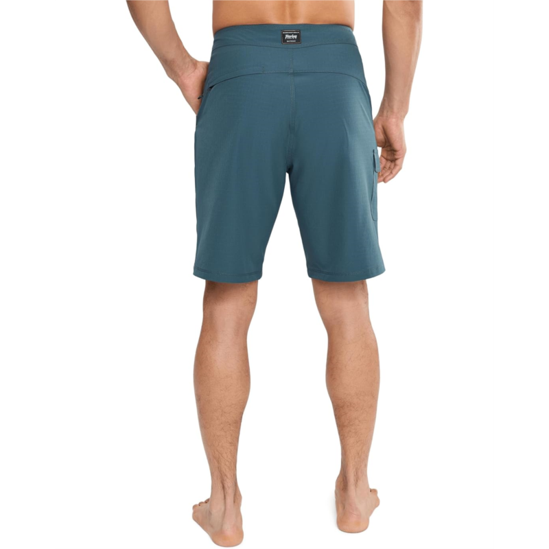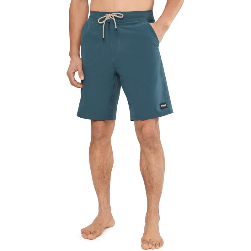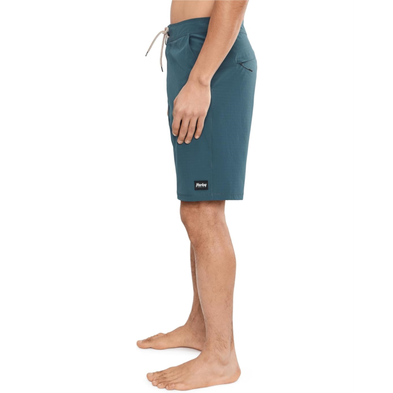 - The Hurley BUILT HYBRID 20'' swim trunks are made with a four-way stretch ripstop fabric with DWR coating to keep your comfortable for sun and surf. The pull-on style trunks feature a drawstring waist, a hidden zippered back pocket, side pockets with mesh pocket bags for drainage, side cargo pocket with button closure at wearers right thigh, and brand logo patch at the right side for authenticity.