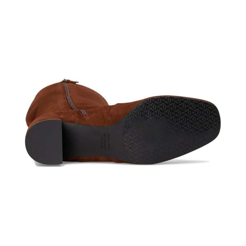 - The Stuart Weitzman Maeve Zip Boots are a sleek, knee-high silhouette that boasts minimalist sophistication. Crafted from leather upper, they feature a squared toe and a walkable block heel that adds subtle elevation without compromising comfort. A side zipper ensures easy wear, while the leather insole and durable rubber outsole offer lasting support.