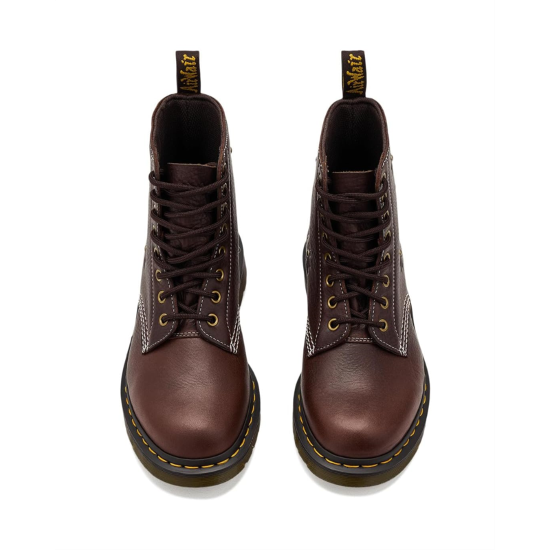 - Classic Dr. Martens grooved sole pattern.