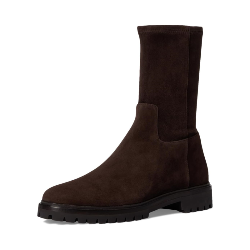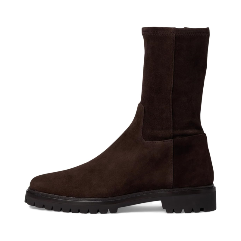 - Ground-breaking style, Loeffler Randall Danny Tall Ankle Lug Sole Boots. Crafted from supple brown stretch suede, these mid-shaft beauties strike the perfect balance between chic refinement and everyday functionality. The sleek ankle-high silhouette with a classic round toe is elevated by a sturdy lug sole, adding just the right touch of rugged charm for city streets or weekend escapes. A zippered side closure ensures effortless wear, while the padded leather insole provides superior comfort with every step. Lined with breathable cotton, these boots are designed for all-day ease without compromising on style. The rubber outsole delivers reliable traction, making them a versatile choice for unpredictable weather and busy schedules.