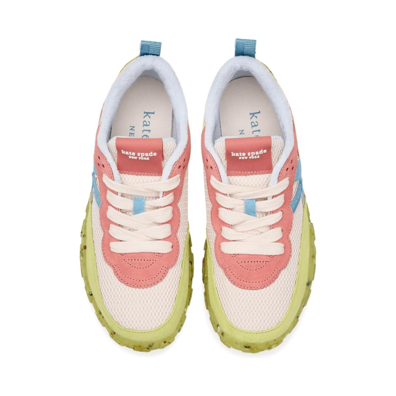 - Own your day and your way wearing Kate Spade New York K As In Kate Open Mesh Runner. Designed with a luxe leather upper and breathable cotton lining, these runners are your new go-to for all-day comfort with high-end flair. The soft cotton insole cushions each stride, while the durable rubber outsole keeps your step grounded from sidewalk strolls to city sprints. A classic lace-up closure offers a secure fit with sporty appeal.