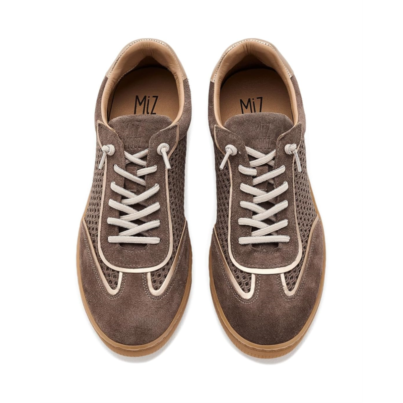 - The Miz Mooz Renee sneaker is crafted with a suede and mesh upper, giving it both a soft, premium look. The leather lining ensures a smooth, comfortable feel against the foot, while the synthetic rubber outsole provides reliable traction and long-lasting wear.