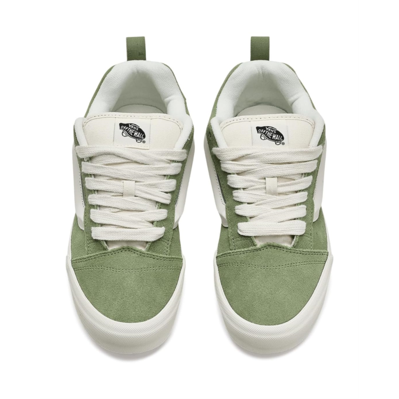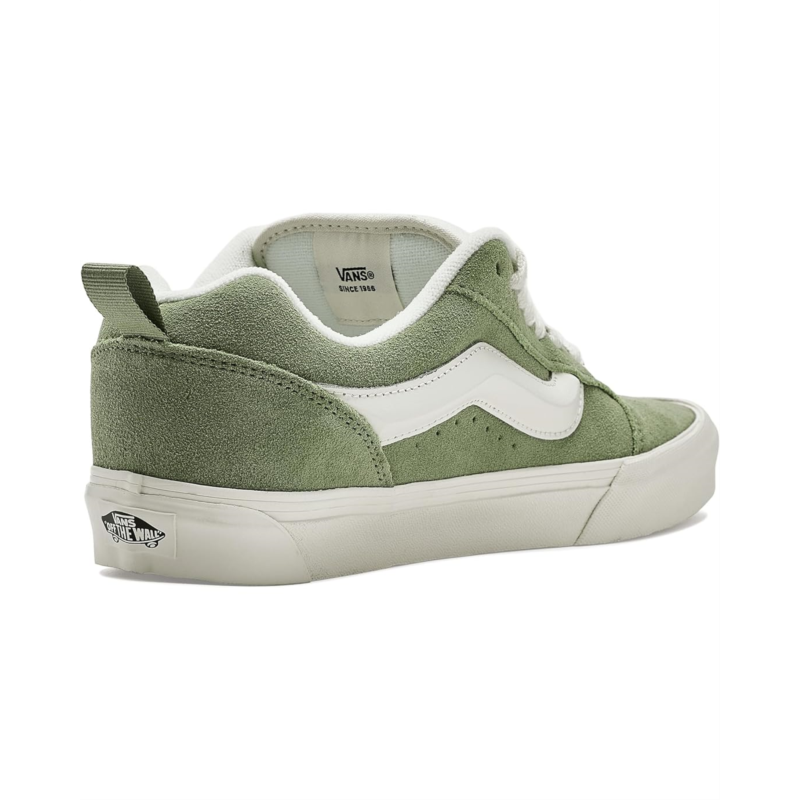 - Get ready to rock the retro look choosing the Vans Knu Skool shoes, a reissued 90s favorite. Made with tough suede upper and cozy cotton lining, these low-top shoes offer durability and comfort. The rubber insole ensures all-day support, while the puffy tongue and ankle collar add a touch of old-school charm. Featuring a puffy 3D molded Sidestripe for added flair, these shoes are perfect for anyone looking to add a vintage vibe to their wardrobe.