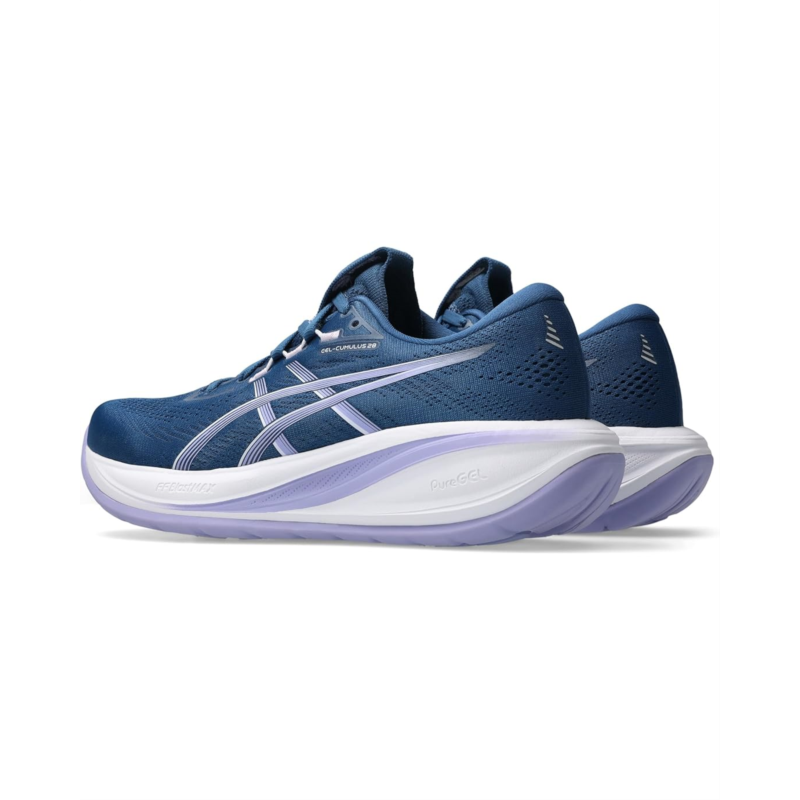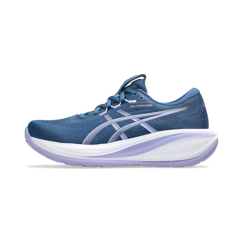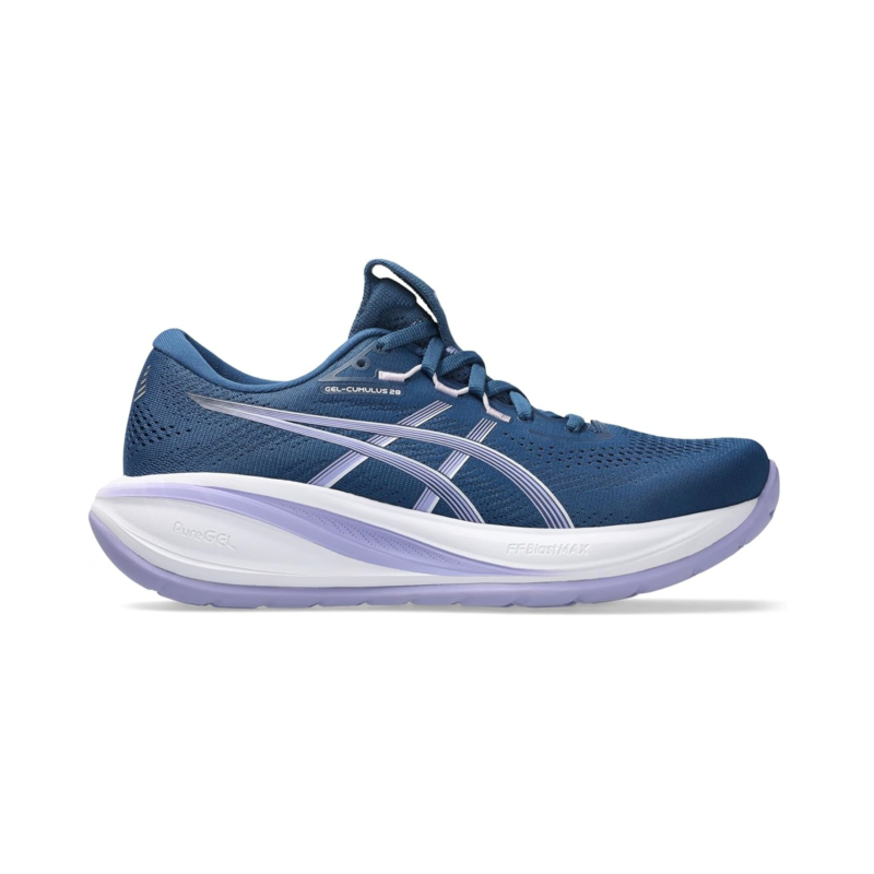 - The ASICS GEL-CUMULUS 28 running shoe is designed to deliver a lightweight feel and a smooth underfoot experience with every stride. Its engineered mesh polyester upper and polyester lining offer breathable comfort while minimizing the need for additional overlays, creating a streamlined and flexible fit. Reflective details enhance visibility in low-light conditions, making it a reliable choice for early-morning or nighttime runs.