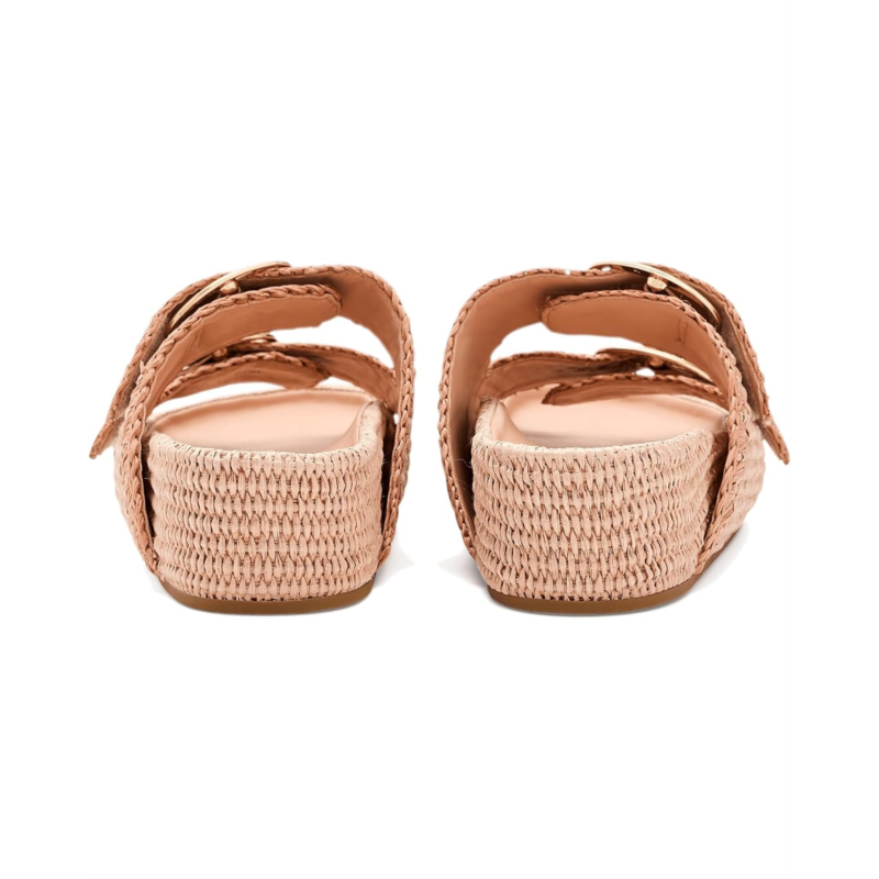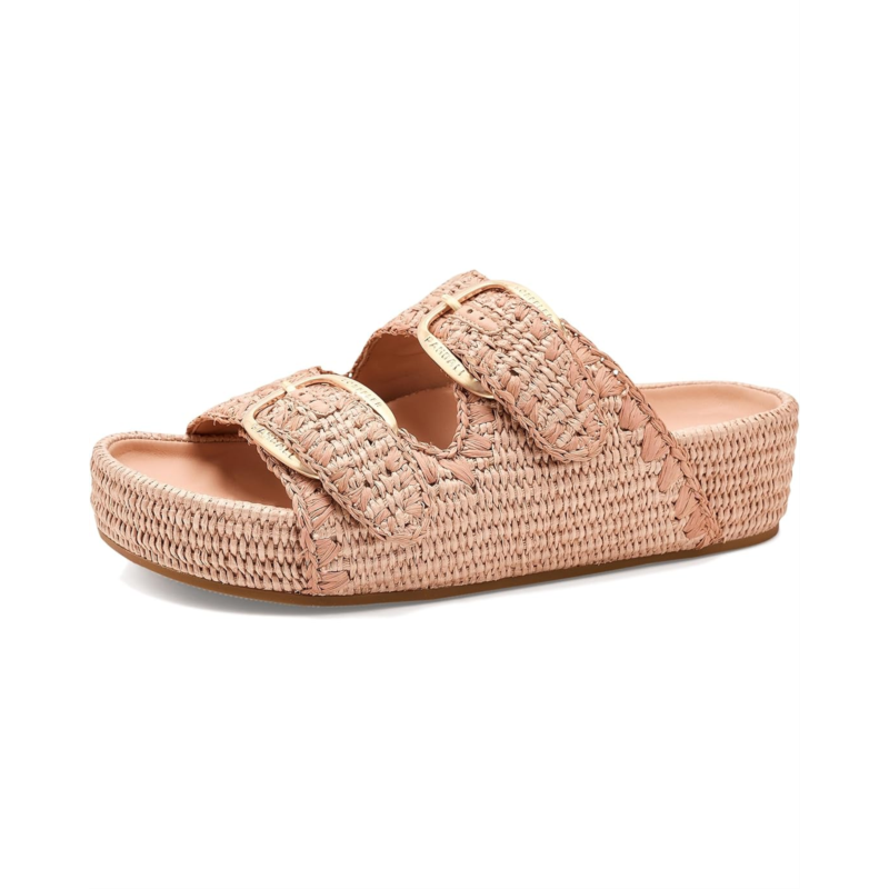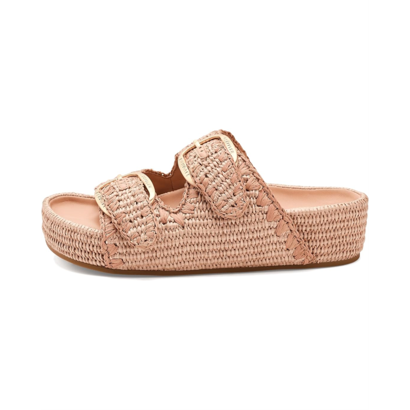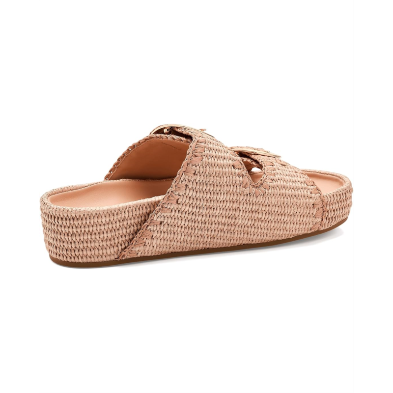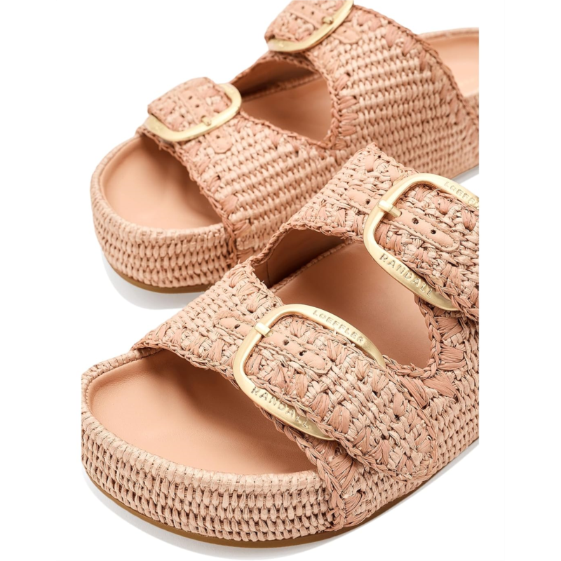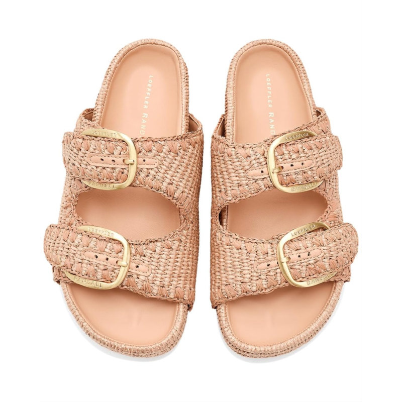 - The Loeffler Randall Nico Two Band Sandals offer a modern design with a minimal look. Crafted from a cotton upper, leather lining, and cotton insole, this pair of sandals features an open, rounded-toe design, slip-on style, and tonal whipstitch detailing. It highlights two large buckle hardware, a padded leather footbed, brand detailing on the footbed and hook-and-loop fastenings at the straps.