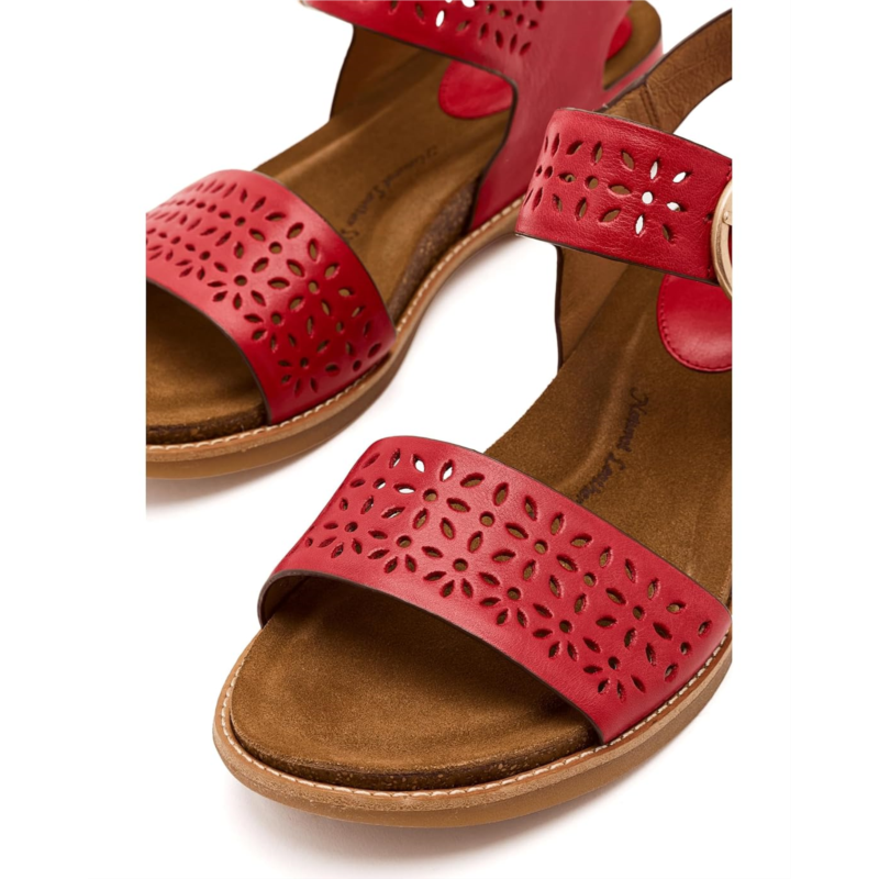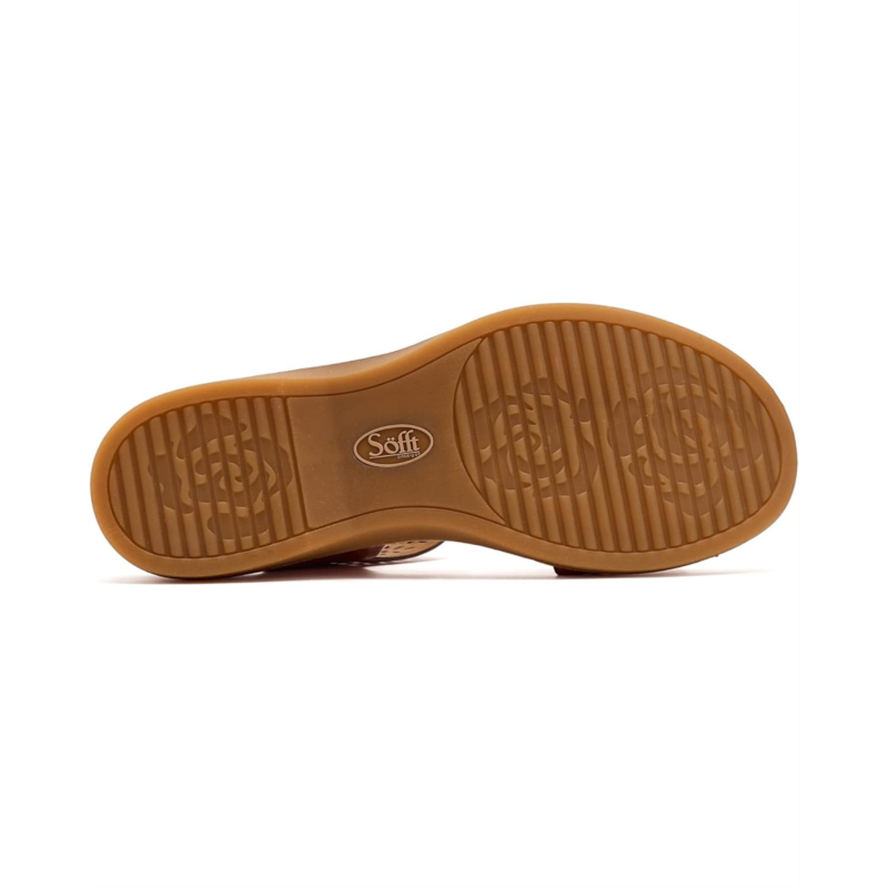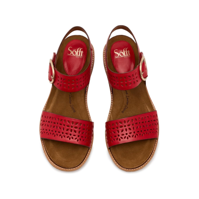 - The Sofft Bali III sandal is designed with laser-cut leather upper straps that add airy texture and visual interest. A buckled strap with hidden hook-and-loop closure ensures a secure yet adjustable fit, while the almond toe silhouette lends a graceful finish.