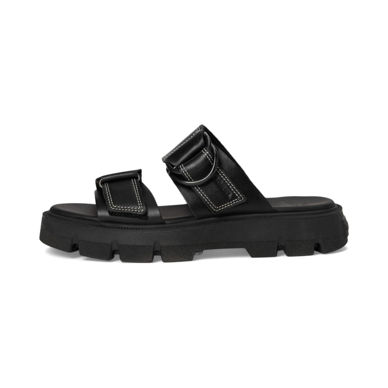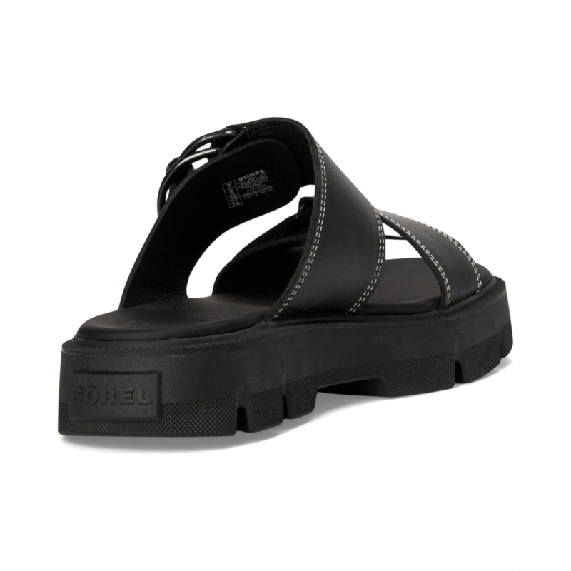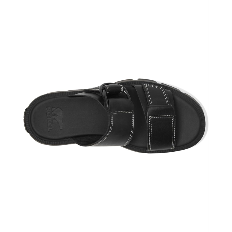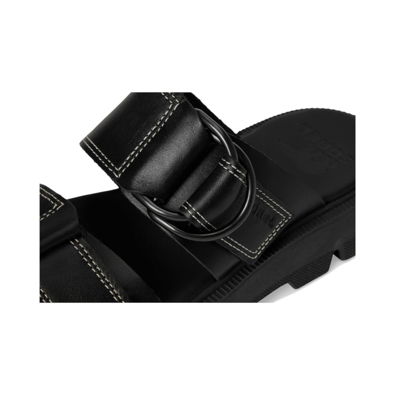 - This is a slide sandal thats made to do more. More design details, more comfort, and more premium finishes. Its the warm weather of the SOREL Rein CB Slide Sandals. Crafted from full-grain leather upper with metal D-ring detail, synthetic lining, plush EVA foam footbed with synthetic topcover, molded FEATHERTREAD rubber with EVA drop-in midsole, and molded FEATHERTREAD rubber outsole.