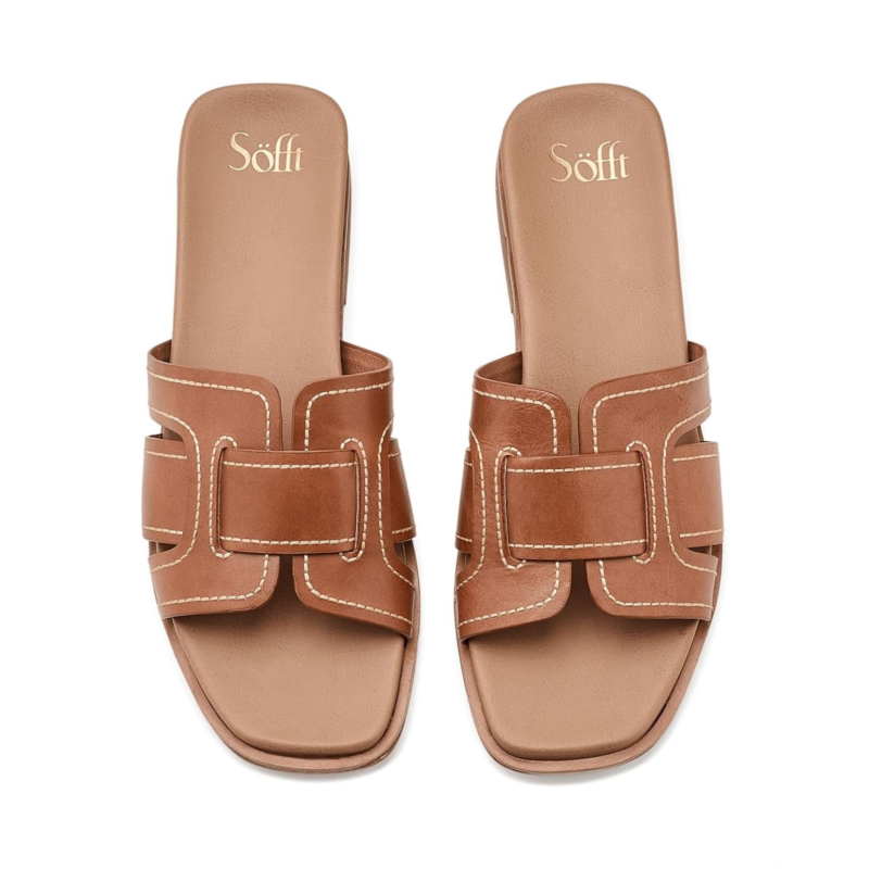 - Capture an easygoing, relaxed vibe with the casual-luxe Sofft Rachel slip-on sandal, crafted from a banded woven upper with artisan stitching and high-rebound cushioning for lasting comfort underfoot. This pair of sandals features an open, round-toe design, slip-on style, low-stacked heels, and branding on the footbed.