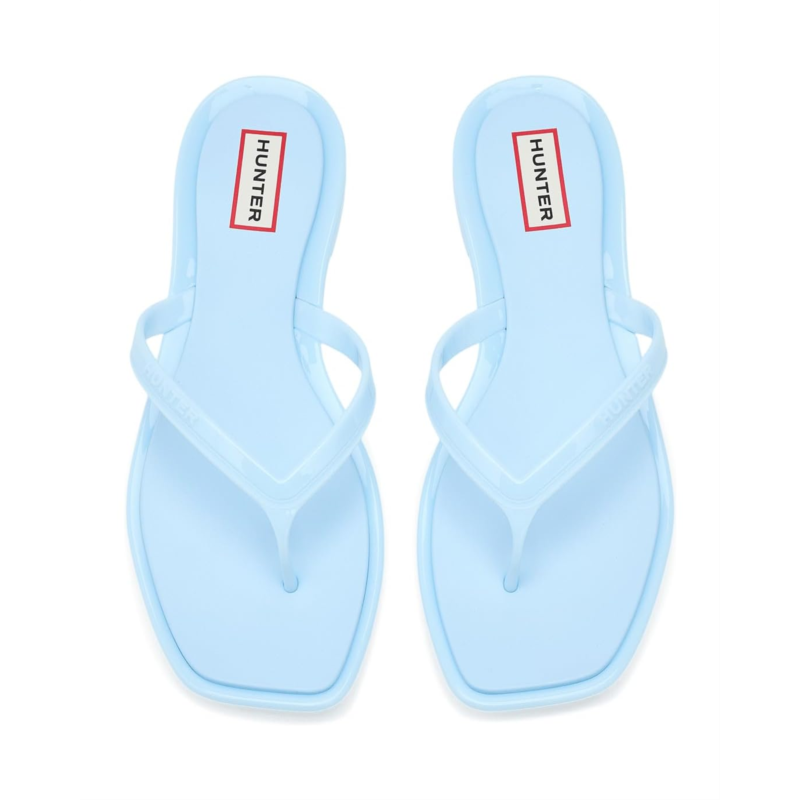 - The Hunter Marin slippers effortlessly blend minimalist style with everyday ease. These slip-on sandals feature a flat sole, a sleek polyurethane (PU) upper, and a modern square toe silhouette. Their polyurethane insole provides a cushioned ride. These slide thongs are the perfect warm-weather staple for beach days, errands, and everything in between.