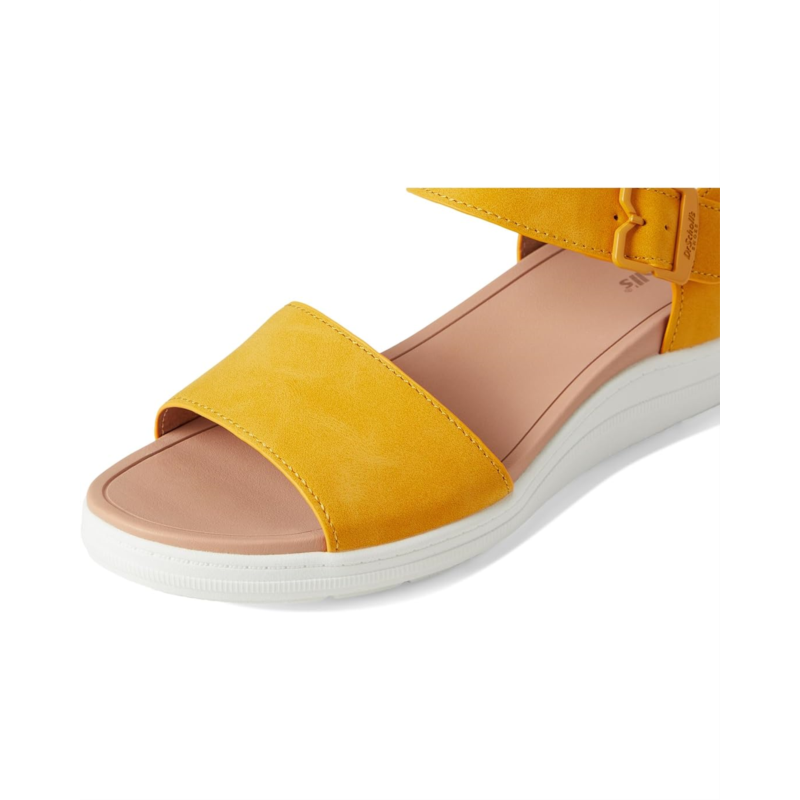 - Dr. Scholls Time Off Sky sport sandals for travel and every day inspired by our viral Time Off sneaker. It features canvas fabric vamp with low chemical faux leather straps, low chemical faux leather upper, or metallic upper with molded EVA footbed and TPR outsole. It has an ankle strap with adjustable hook-and-loop closure for easy on and off. Insole Technology with anatomical cushioning, comfort, & arch support. Skys the limit in these womens sandals with sporty feels and all the comfort of the most-wanted Time Off travel sneakers.