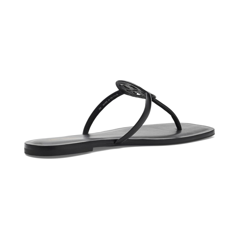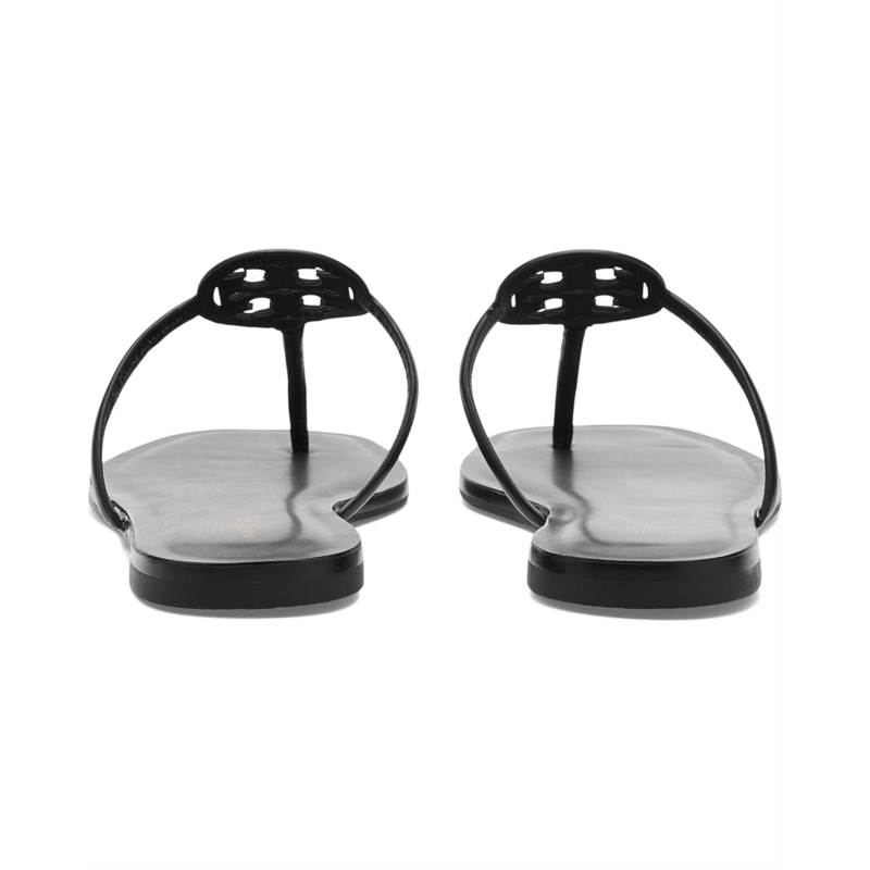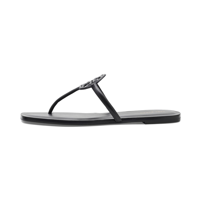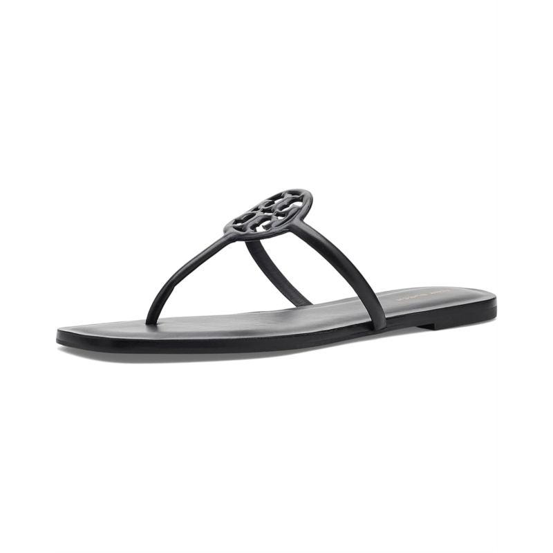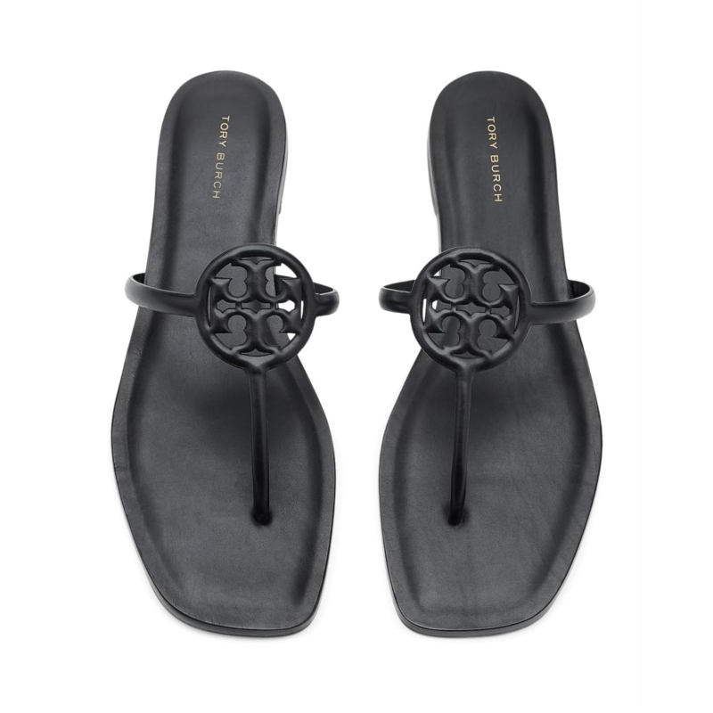 - The Tory Burch Miller Capri Sandals feature a T-strap silhouette with the iconic logo medallion at the center for a modern touch. A comfortable footbed and durable rubber outsole make them ideal for all-day wear.