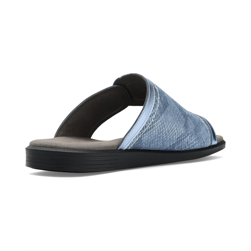 - Step into pure ease wearing the SAS Market Comfort Slide Sandals, designed for women who crave style without compromising on support. The easy slip-on silhouette makes them perfect for busy mornings and relaxed afternoons alike, while the upper showcases a beautiful combination of genuine leather textures for a refined, elevated look. Inside, a padded soft microfiber lining wraps your feet in breathable, all-day comfort. The adjustable buckle closure ensures a customized fit, giving you the freedom to fine-tune support exactly how you like it. Underfoot, the contour padded insole is thoughtfully crafted with soft, pressed layers that mold to the natural shape of your foot, delivering personalized cushioning with every wear. Finished with a cushioned outsole featuring millions of tiny air bubbles in a molded polyurethane sole, these slides absorb shock and soften every step.