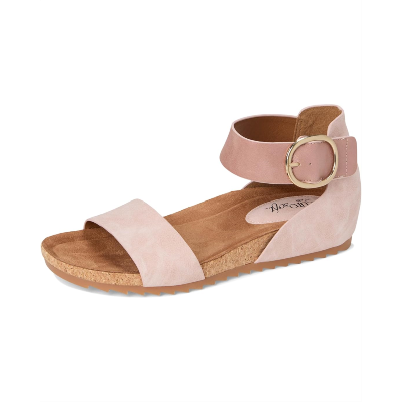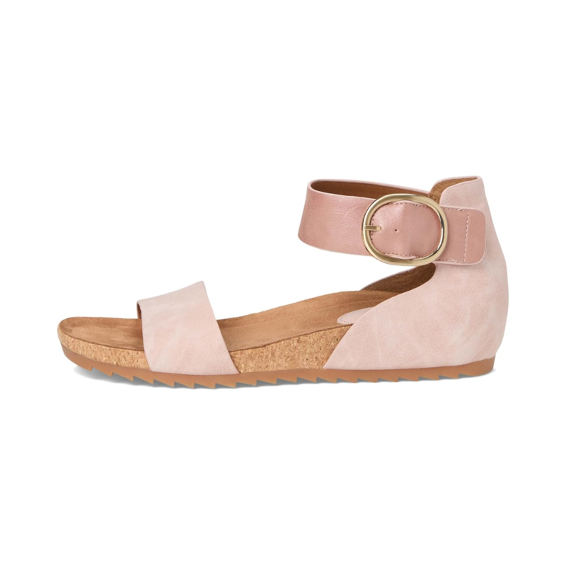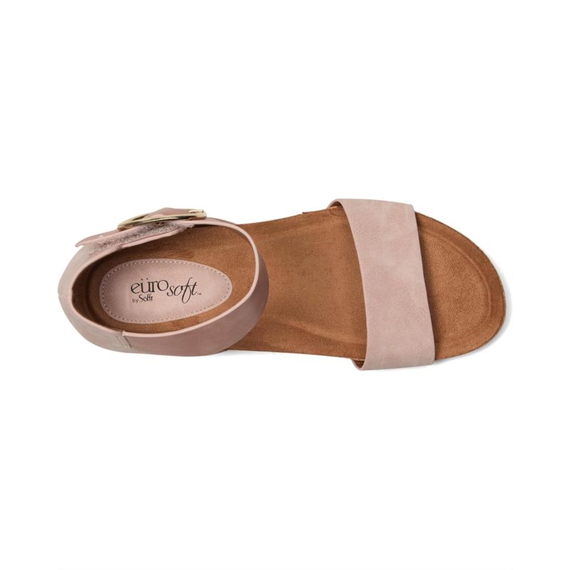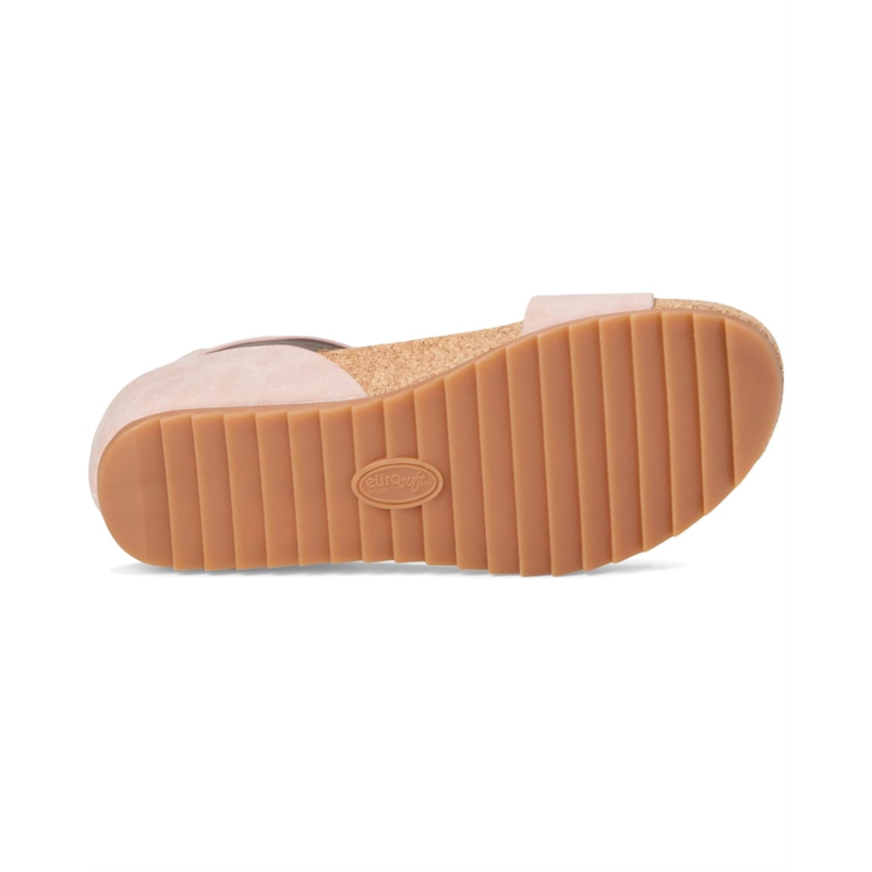 - The EuroSoft Ginney sandal combines practicality with contemporary charm. Featuring a two-piece upper for a sleek look, an adjustable ankle strap with hook-and-loop closure ensures a perfect fit with ease. The buckle accent adds a stylish touch, while the cork midsole offers both comfort and a natural aesthetic. With a flexible rubber outsole, these sandals are perfect for staying chic and comfortable all day.
