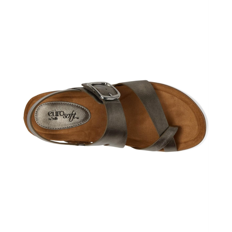 - The EuroSoft Hampton sandals are comfortable wedge heels that are designed for your everyday comfort and style. These heeled sandals are made of a cork footbed, faux leather lining, and foam insole. The faux leather upper features a slingback strap with hook-and-loop adjustability and a buckle accent.