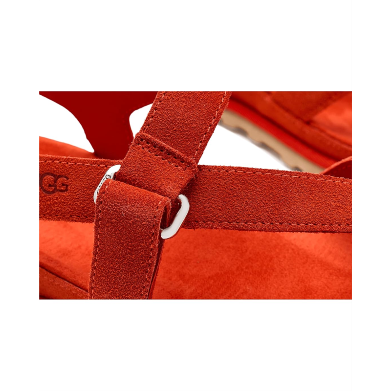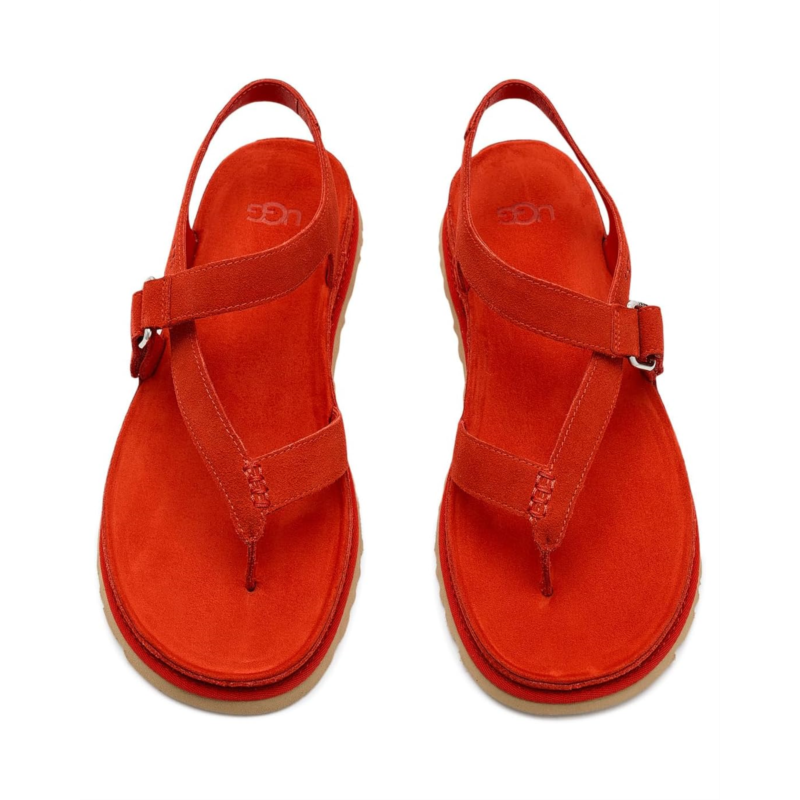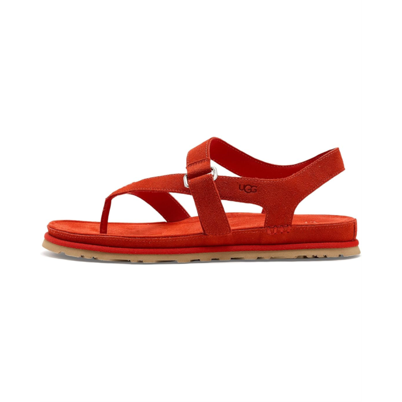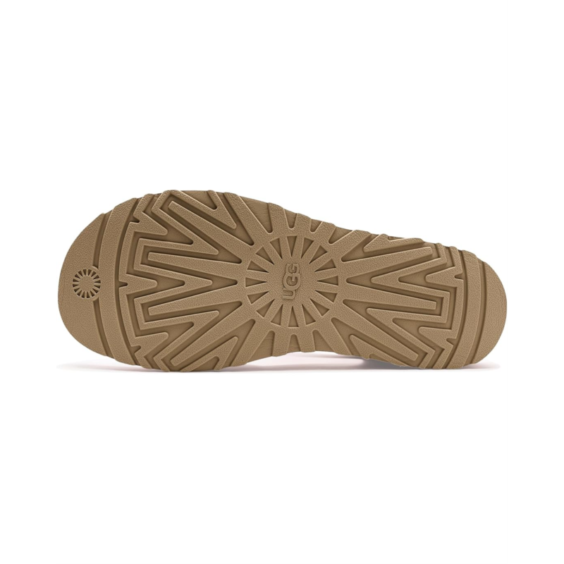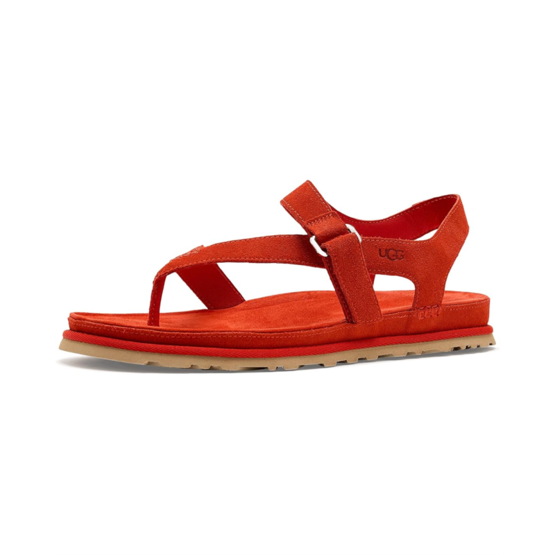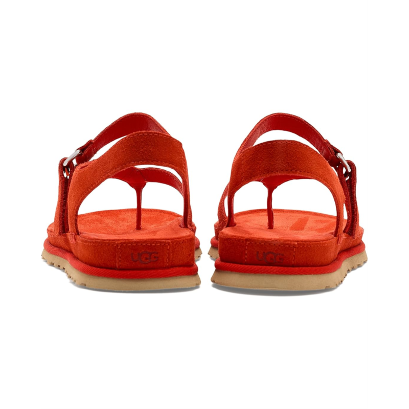 - Step into elevated minimalism wearing the UGG Goldengaze Toe Post, where laid-back design meets premium craftsmanship. Crafted with a soft suede upper and a smooth suede toe post, this sandal delivers a refined yet relaxed look that pairs perfectly with everything from flowy dresses to cropped denim. The adjustable ankle strap features a functional buckle and hook-and-loop closure, giving you a secure, personalized fit with easy on-and-off convenience. Inside, a breathable leather lining enhances comfort, while the microfiber footbed and sugarcane EVA footbed cushion every step. The sockliner is infused with a peppermint-based freshness treatment, keeping things cool and comfortable all day long. Designed with a sugarcane EVA midsole made using recycled EVA regrind and a durable sugarcane EVA outsole, it offers lightweight support and conscious comfort. Finished with embossed UGG logos and recycled textile binding, this sandal blends iconic style with feel-good sustainability.