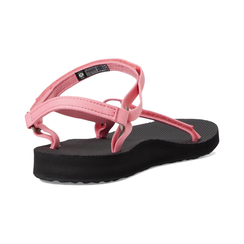 - Bring that luxe and comfort touch to your look wearing the Teva Original Universal Slim. These flat sandals showcase recycled EVA regrind midsole that provides maximum, lightweight comfort, recycled rubber regrind outsole that provides durability and traction, and adjustable ankle strap hook-and-loop closure.