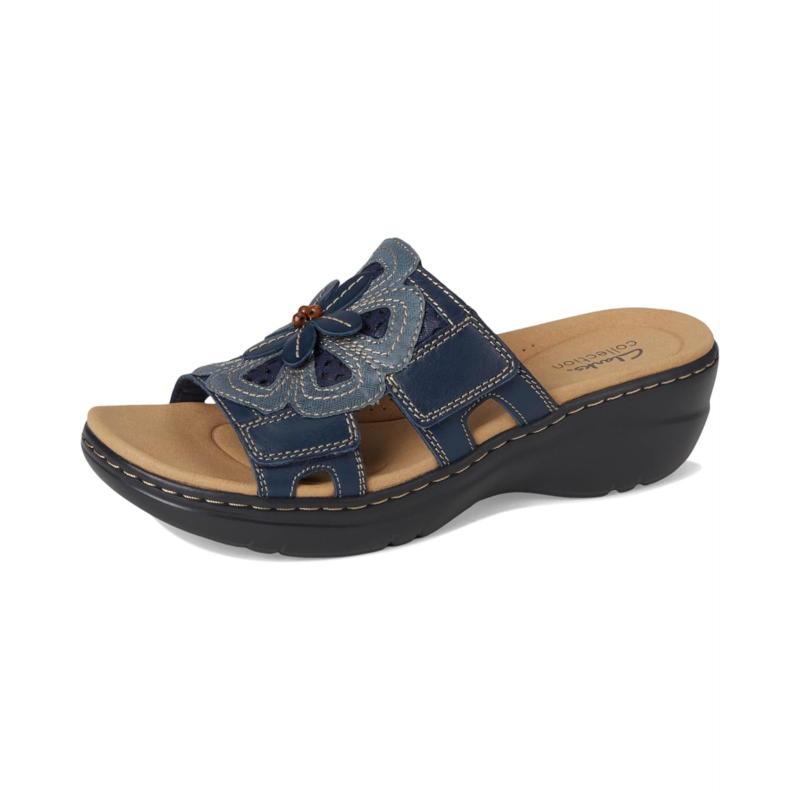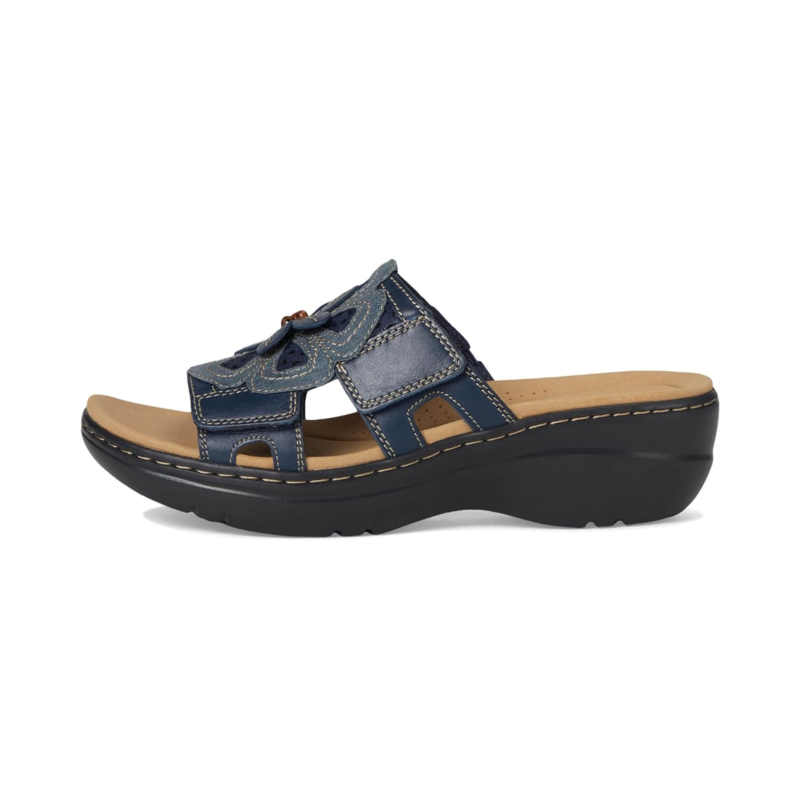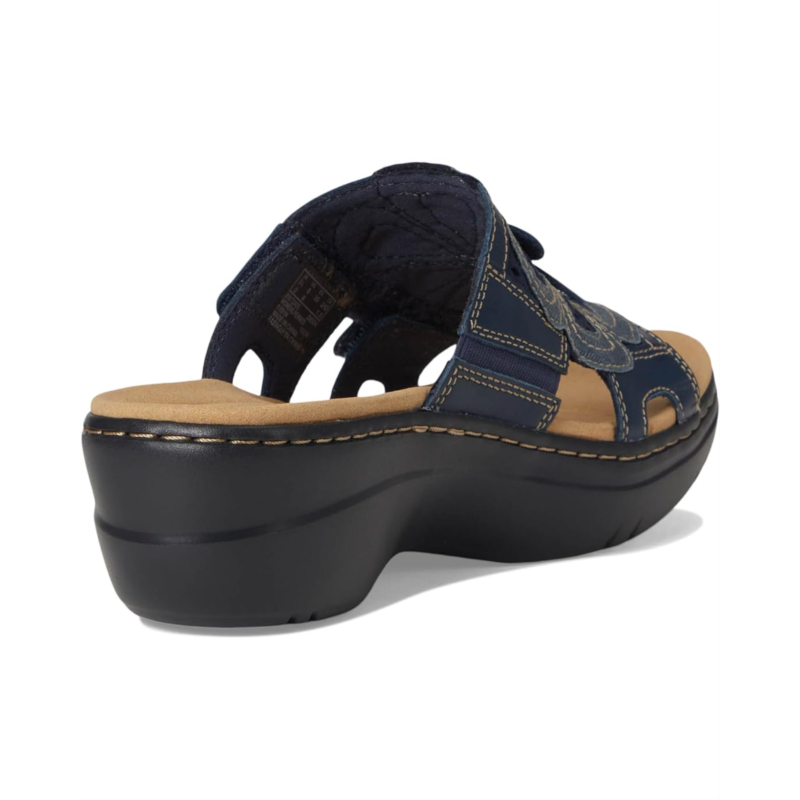 - Underpinned by an easy-walk wedge heel, the Clarks Merliah 2 Belle slip-on sandal puts the ease in your warm-weather plans. Hard-wearing uppers show off a feminine, strappy design, while a lightweight EVA outsole guarantees breezy steps from beach to bar.