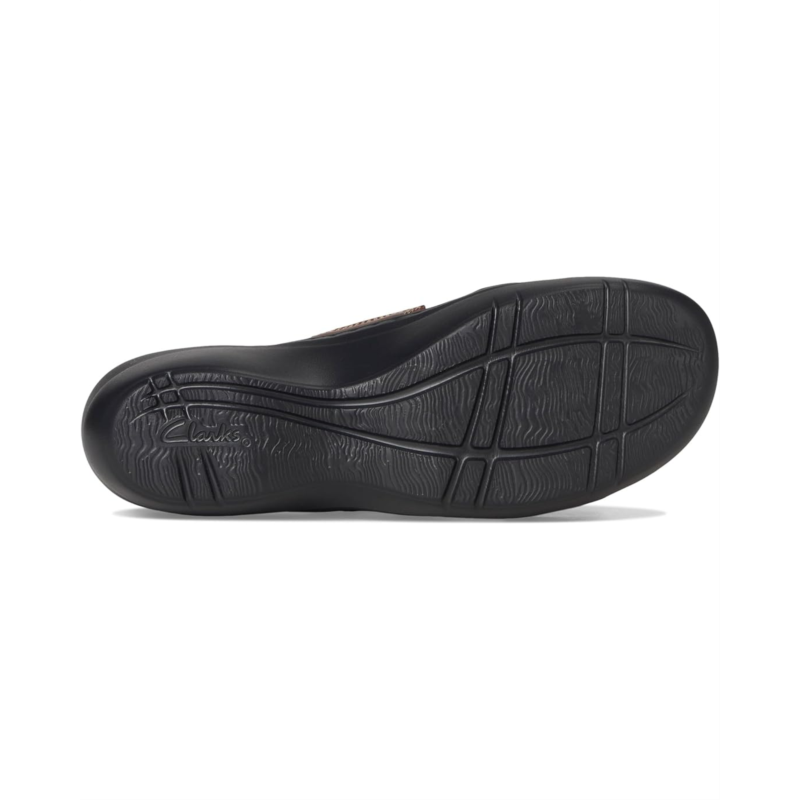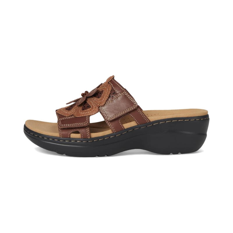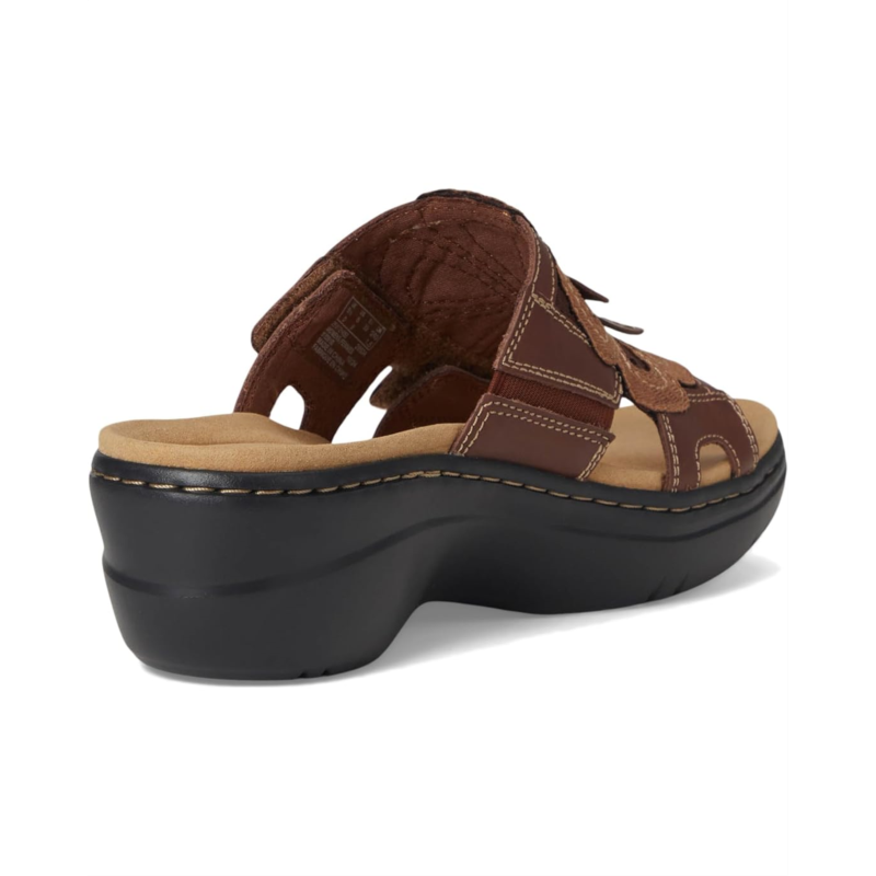 - Underpinned by an easy-walk wedge heel, the Clarks Merliah 2 Belle slip-on sandal puts the ease in your warm-weather plans. Hard-wearing uppers show off a feminine, strappy design, while a lightweight EVA outsole guarantees breezy steps from beach to bar.