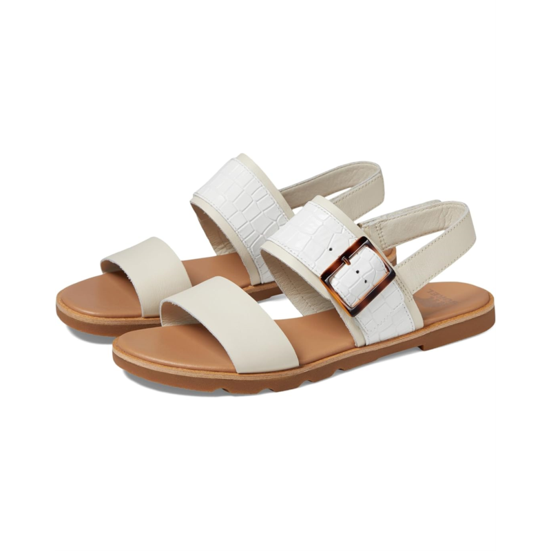 - Innovate your style this season wearing the super comfortable SOREL Ella III Slingback Flat Sandals. This round toe pair features full-grain leather upper construction with hook-and-loop ankle strap closure.