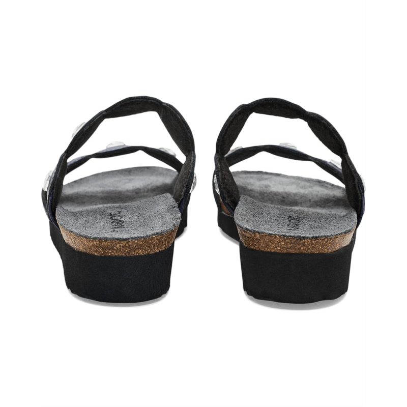 - Meet Naot Hailey - your perfect blend of comfort and glamor. With its sleek design featuring gore and dazzling rhinestone accents, this slide adds a touch of sparkle to any outfit. The easy slip-on design ensures convenience without compromising on style, making Hailey the ideal choice for any occasion. Crafted with Naots anatomic cork and latex footbed wrapped in pampering suede and molds to the shape of your foot with wear, ensuring personalized comfort. Plus, its accepted by the American Podiatric Medical Association (APMA) for promoting good foot health.