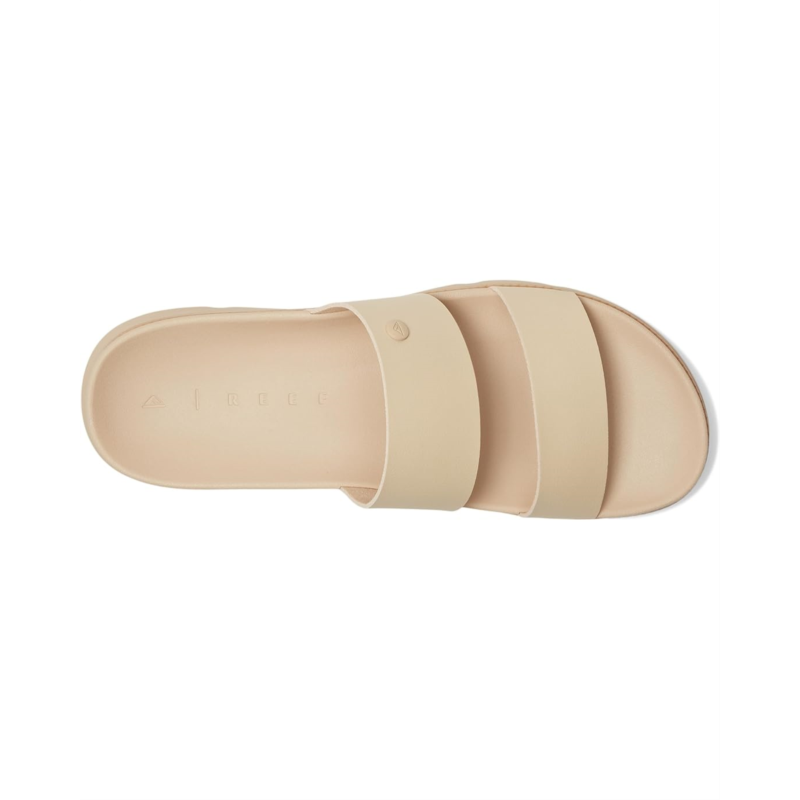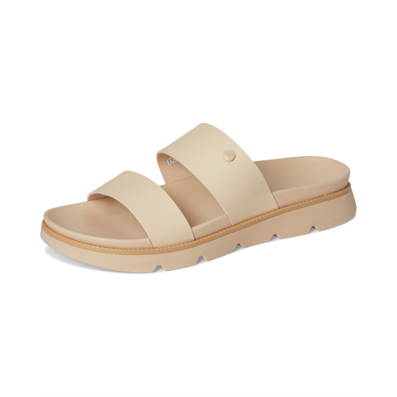 - The ultimate choice for seamless style and enduring comfort, Reef Vista Luxe Thea. Crafted with a soft vegan leather two-strap upper, this slip-on sandal brings fashion-forward flair to your everyday look. The contoured VISTA PU footbed and cushioned EVA midsole cradle your feet in plush support, while the color-blocked sidewall adds a modern, eye-catching twist. Whether youre brunch-bound or beachside, the lightweight EVA outsole with lug texture ensures reliable traction from sunrise to sunset. Easy to slide into, hard to take off, Thea is your daily dose of elevated comfort.
