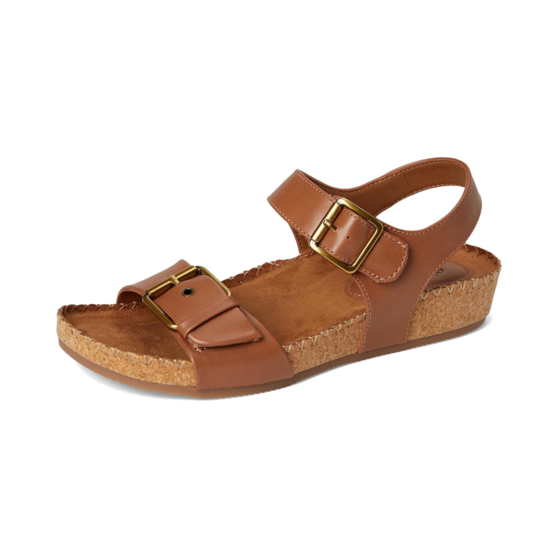 - The EuroSoft Gypsy sandals feature double buckles with hidden hook-and-loop adjustability for a secure and customizable fit. The buckle accent adds a stylish touch, while the whipstitch accents around the footbed enhance the overall look. The cork wedge provides a comfortable lift, and the flexible construction ensures ease of movement and comfort throughout the day.