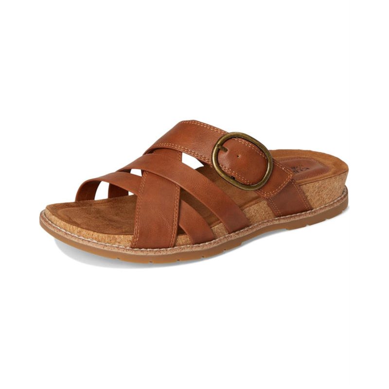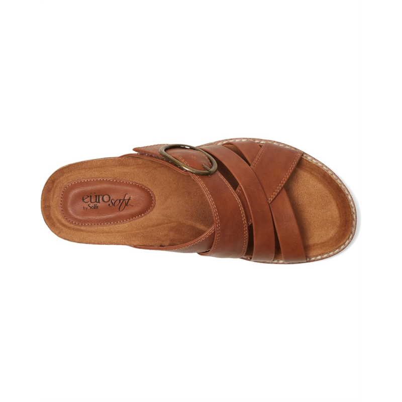 - The EuroSoft Georgette sandals feature a woven leather upper, giving them a stylish and textured look. The adjustable buckle ensures a secure and customizable fit. The cork wedge provides a comfortable lift and natural aesthetic, while the padded microsuede footbed offers exceptional comfort for all-day wear.