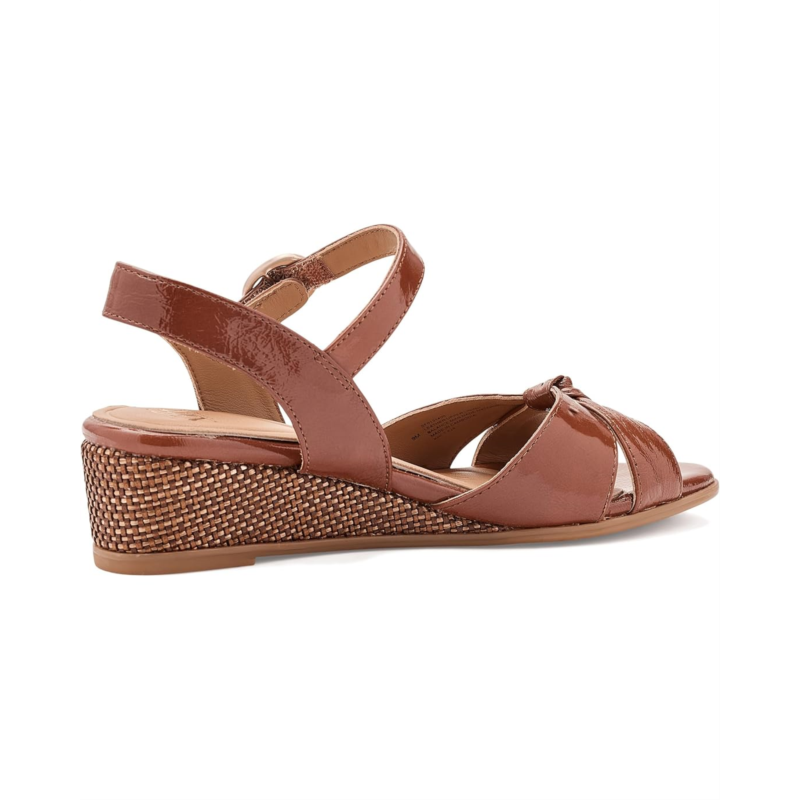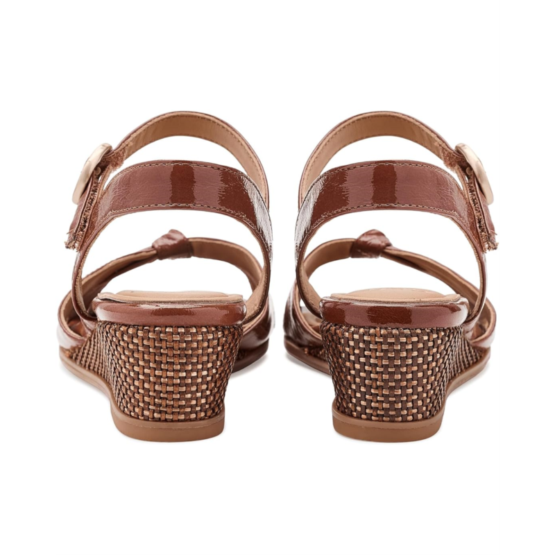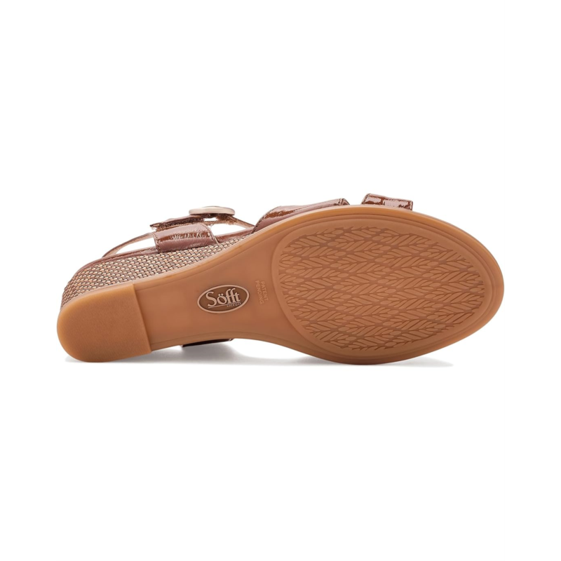 - The Sofft Summer wedge sandal boasts a two-piece soft leather upper that creates a refined look. The ankle strap with buckle adjustability ensures a secure fit. A wrapped wedge heel profile adds subtle height and sophistication, balanced by a flexible rubber outsole for easy movement.