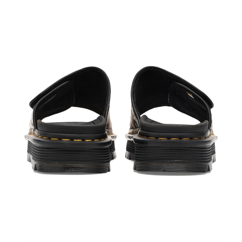 - The Dr. Martens Zebzag Slides are designed for those who love laid-back fashion without compromising on attitude. Crafted from silky-soft EH suede, these slides deliver a premium feel that instantly elevates your everyday look. The easy slip-on design makes them perfect for quick outings, relaxed weekends, or post-adventure comfort. A secure rip tape closure ensures a customized fit, keeping your steps steady and confident throughout the day. Underfoot, the hybrid air-cushioned sole blends featherlight Ethylene Vinyl Acetate with durable polyvinyl chloride to provide lightweight lift, shock absorption, and reliable stability with every stride. Finished with the signature black-and-smoke sole and unmistakable yellow stitching, these slides carry the bold DNA of Dr. Martens while embracing effortless versatility.