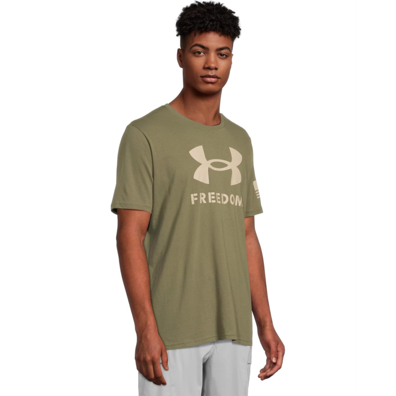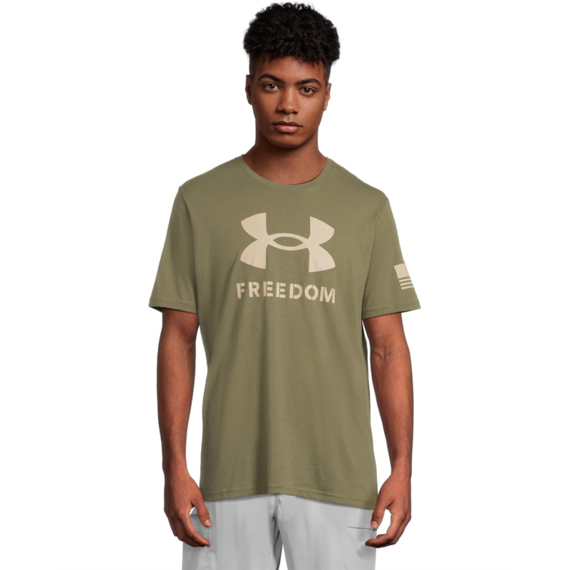 Look sharp and stylish wearing the Under Armour Freedom Logo T-Shirt. The shirt features a well-fitted design, crew neckline and graphic print with brand detailing on the front for an elevated glance.