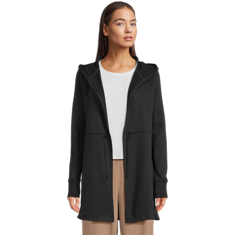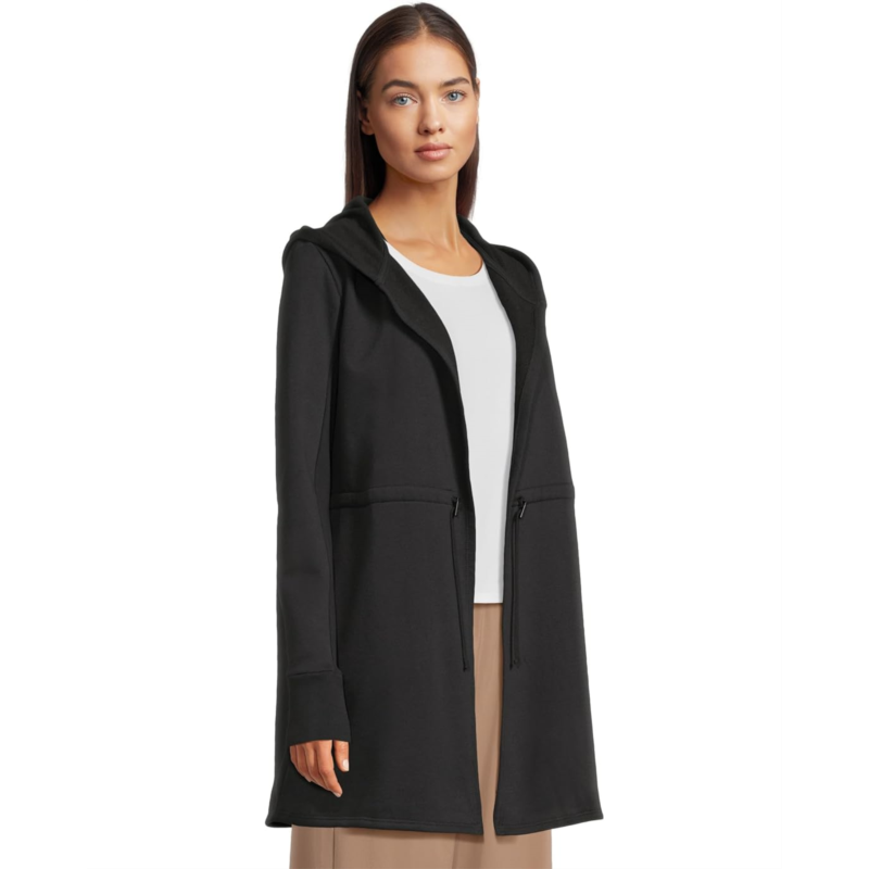 Unwind in style wearing the Beyond Yoga On The Go Jacket. Featuring hooded construction, open front silhouette, and adjustable drawstring tie on the waist. It has two on-seam hand pockets for added convenience.