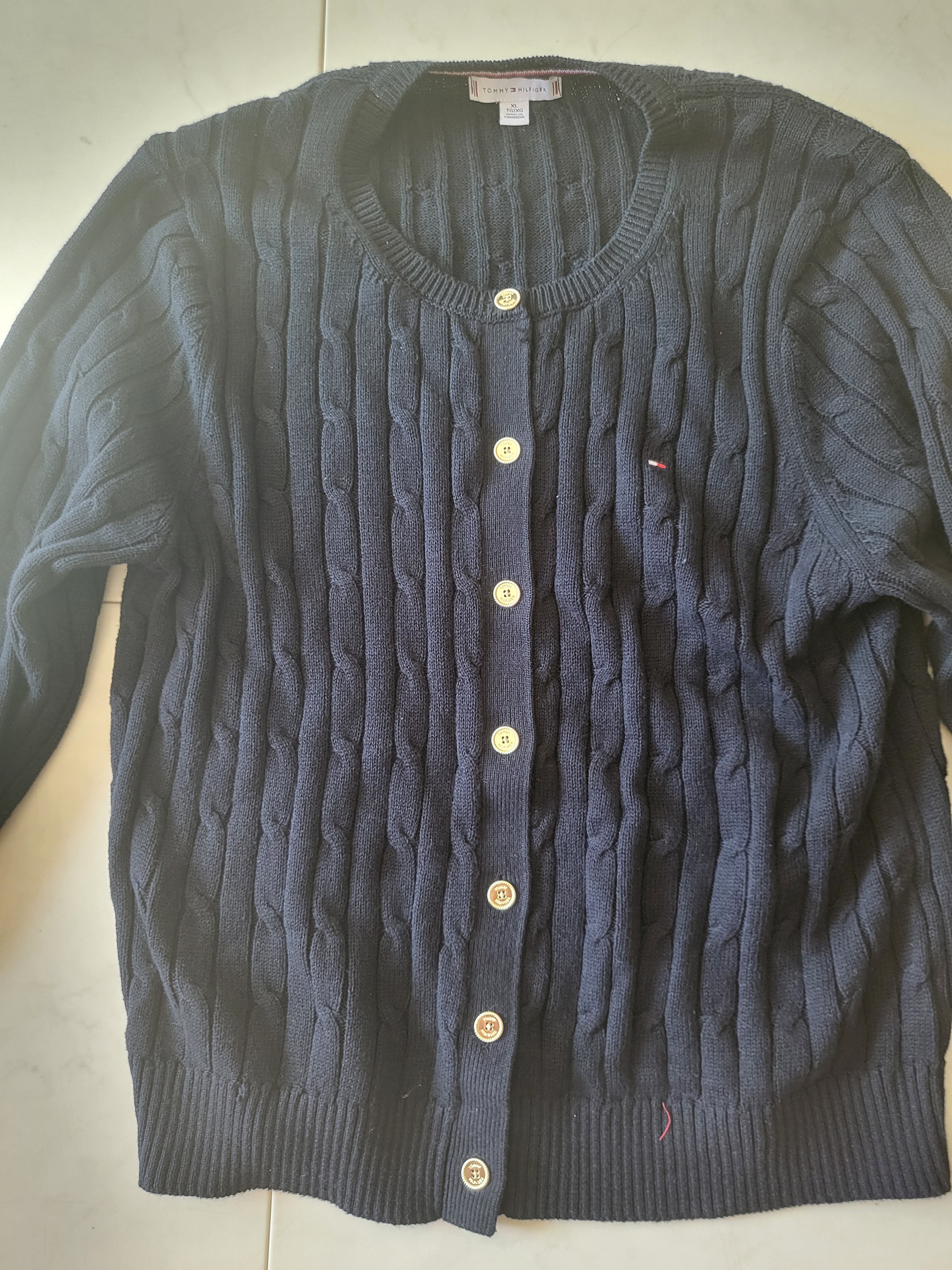 Tommy Hilfiger women's sweater. Made from a soft, lightweight cotton weave, this textured cable knit button-up cardigan is a versatile transitional-weather layer.