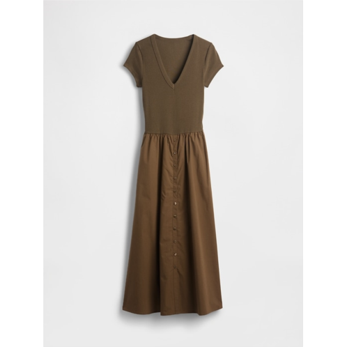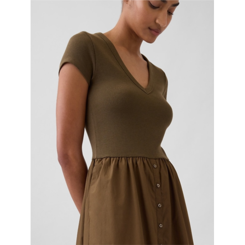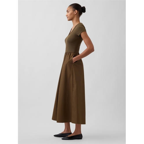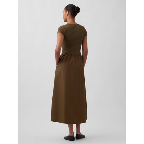 - Soft stretch modal-blend top with a crisp cotton poplin skirt mixed media dress.
