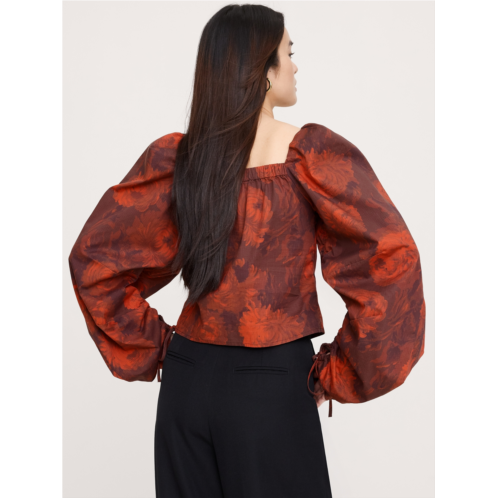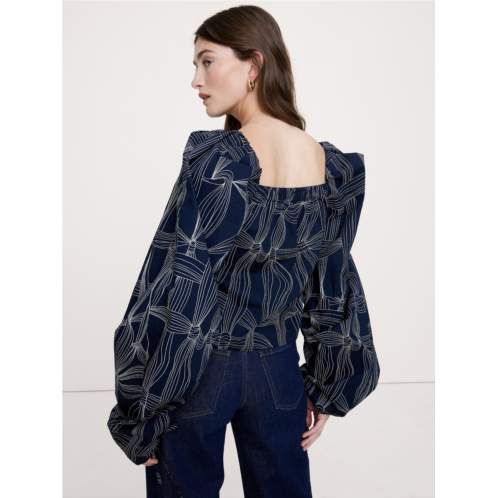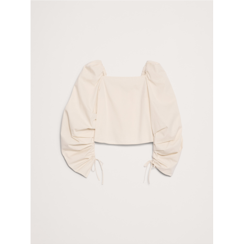 - We love the tension between the femme silhouette and the utilitarian fabric of this top (it's cut in our cotton ripstop with a signature grid texture). Use the drawstrings at the cuffs to wear the sleeves long and flowing or tighten to exaggerate the puff sleeves.