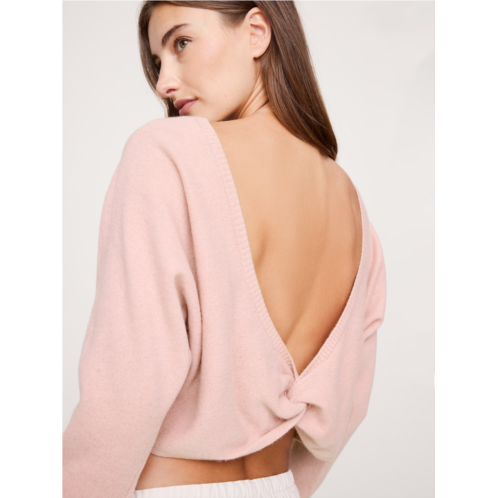 - The vibe is lightweight luxury. This backless cashmere sweater has an oversized fit, knitted in our lightweight cashmere yarnselected for its softness and all-season weight.
