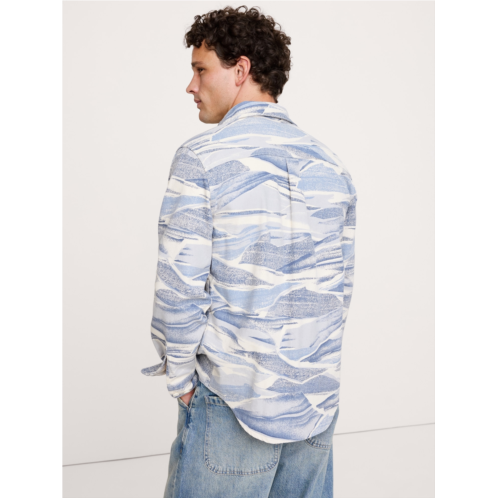 - Details we love about this overshirt: it's made from a printed cotton denim that works for most seasons and finished with a garment wash so it's extra-soft. Plus, it pairs well with just about everything.
