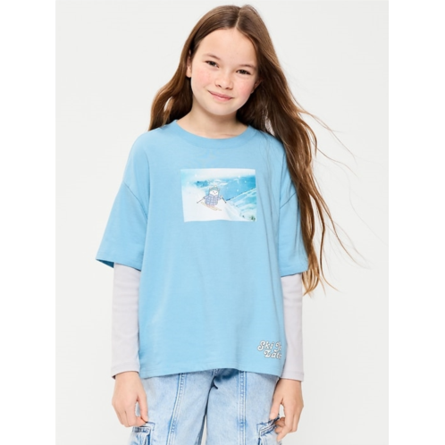 [US] OldNavy Oversized Long-Sleeve 2-In-1 Graphic T-Shirt for Girls