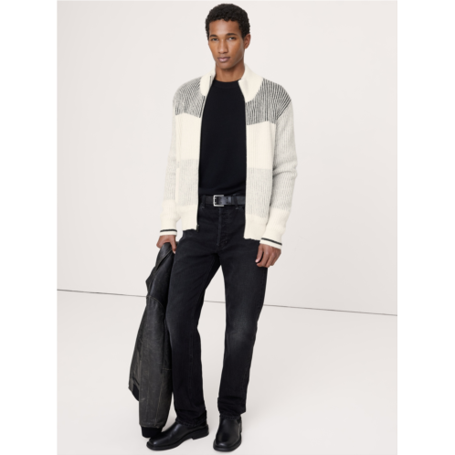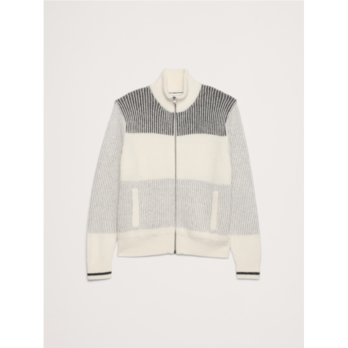 - So soft, so luxe, we kept the fit relaxed for this classic zip-up sweater jacket, knit in a warm blend of alpaca and wool. Here, the yarn is plaited to create a really cool striped, three-color effect.