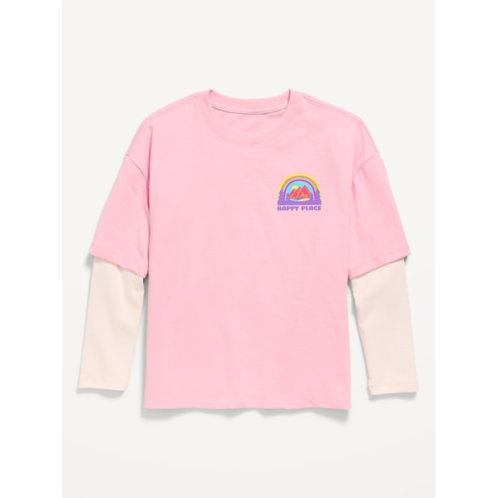 [US] OldNavy Oversized Long-Sleeve 2-In-1 Graphic T-Shirt for Girls