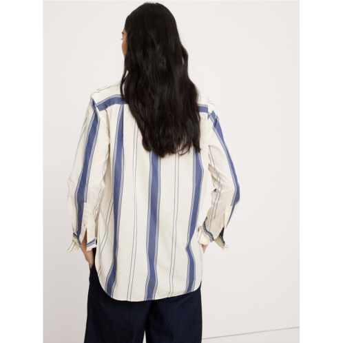 - Back and better than ever. We updated the fit on our best-selling Oversized Shirt by taking it in slightly at the shoulders, waist and sleeves to create the ideal, effortless button-down top in premium 100% cotton poplin.